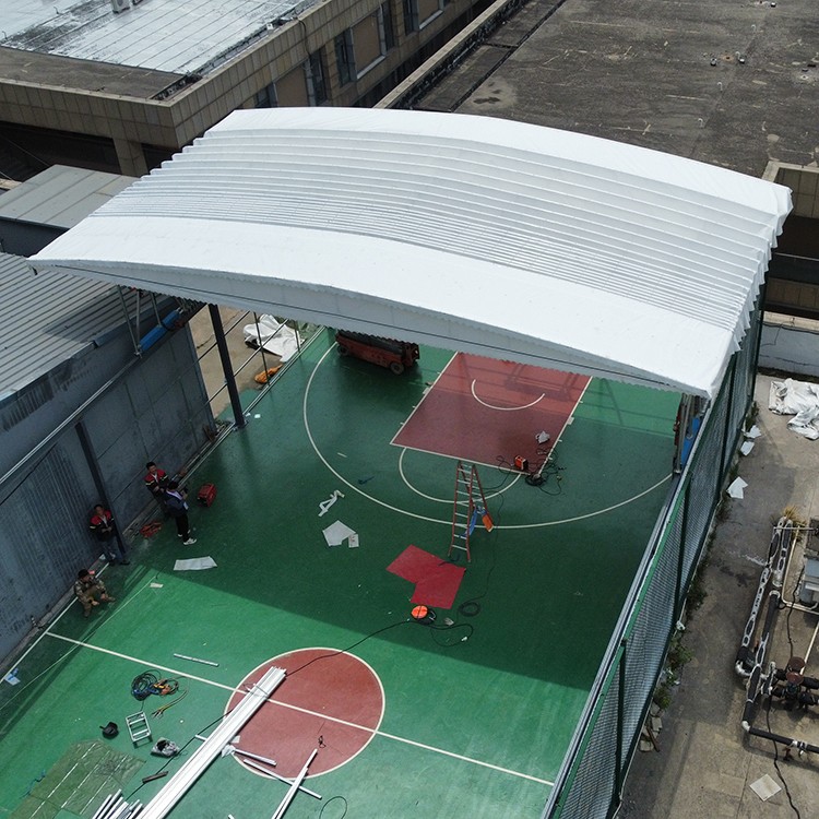 重慶籃球場架空電動(dòng)雨棚 懸空伸縮雨棚廠家安裝