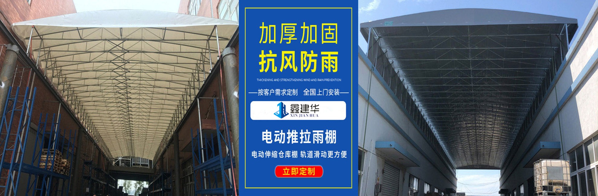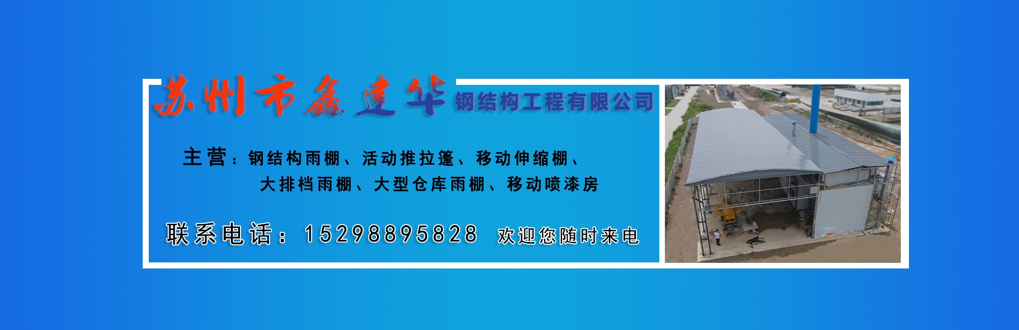 蘇州鑫建華鋼結(jié)構(gòu)工程有限公司,是一家從事戶外倉儲(chǔ)雨棚,活動(dòng)雨棚、移動(dòng)雨棚設(shè)計(jì)、生產(chǎn)、銷售、技術(shù)服務(wù)的公司。 鑫建華擁有多地加工廠區(qū)(江蘇蘇州,天津,湖北武漢,山東聊城,四川成都,廣東東莞),服務(wù)范圍多地。公司匯集了一批擁有豐富實(shí)踐經(jīng)驗(yàn)的技術(shù)人才,設(shè)計(jì)出實(shí)用電動(dòng)推拉倉儲(chǔ)產(chǎn)品,實(shí)現(xiàn)空間利用的趨勢。作為江浙滬地區(qū)戶外遮陽倉儲(chǔ)的公司,注重在新產(chǎn)品研制開發(fā)方面的投入,在技術(shù)理念和造型設(shè)計(jì)等方面不斷推陳出新,在質(zhì)量和服務(wù)上信守承諾。